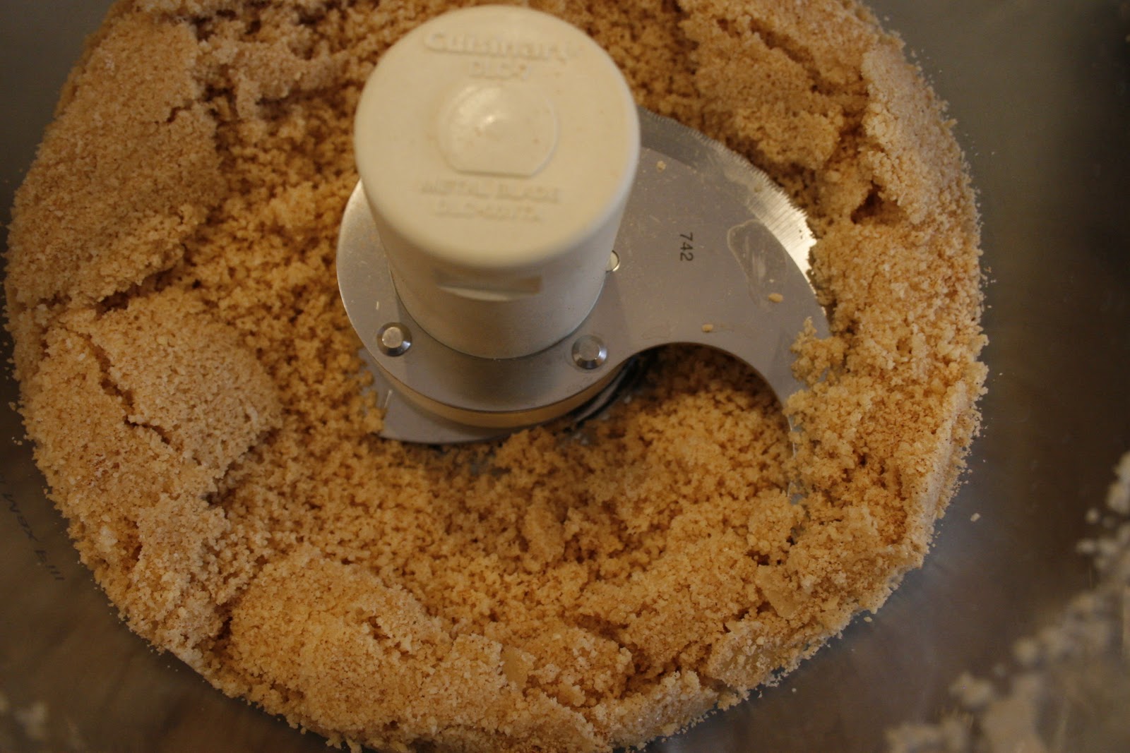 1) Put almonds, cinnamon, and both sugars in the bowl of a food processor with a metal blade and process until nuts are finely ground.